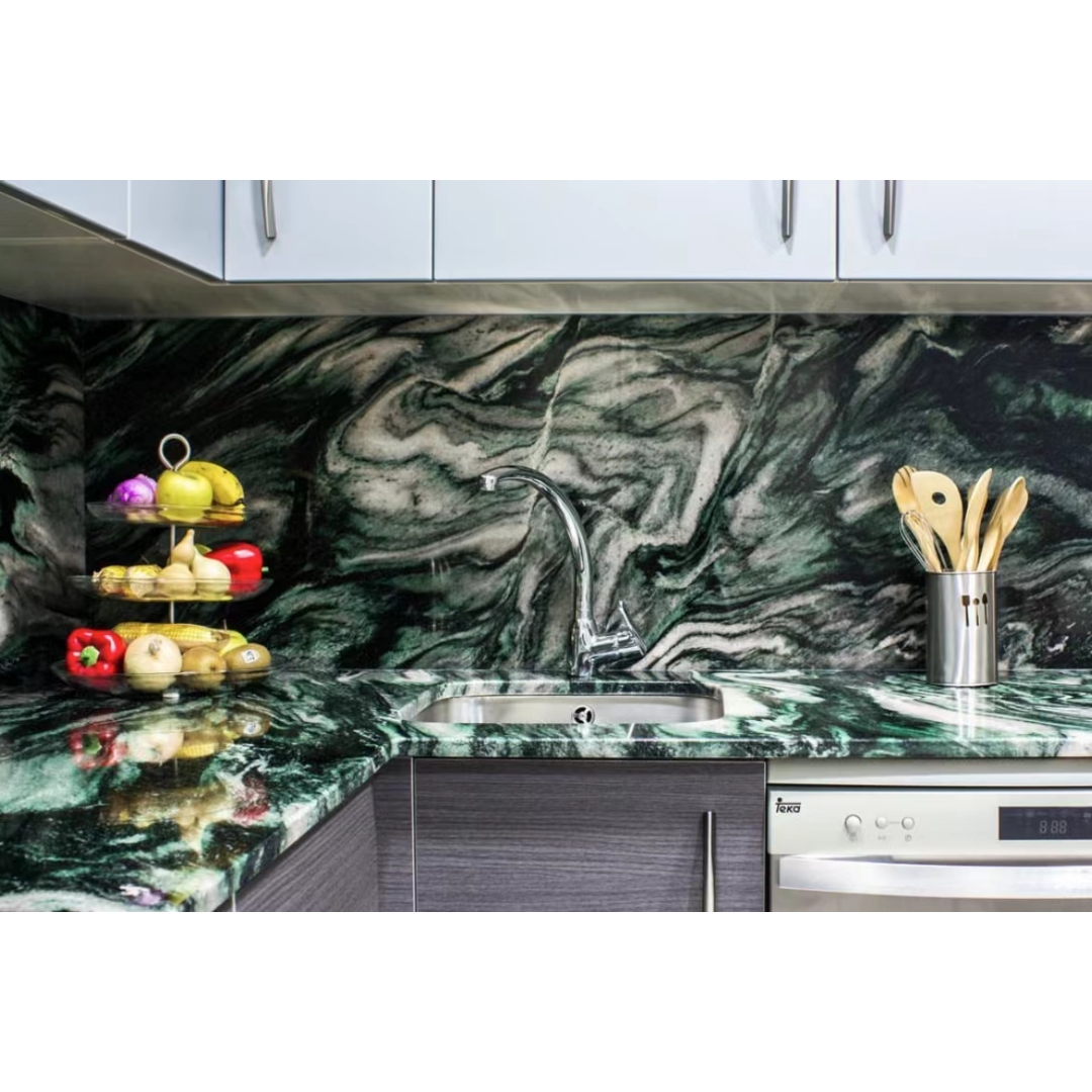 Verde Lapponia Quartzite’s versatility extends to its compatibility with different design styles. Its vibrant green color adds a touch of natural beauty and sophistication to both modern and traditional settings. It can be used as a statement piece, creating a focal point in a space, or as an accent to complement other design elements.