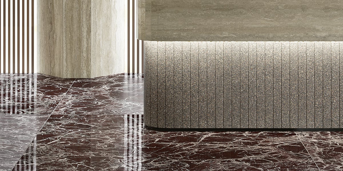 I-IIDStolon, umenzi odumileyo weemveliso ezisemgangathweni zendalo eziphezulu, ngekratshi unika imabula yayo yeRubinorite. Eli litye lokuthintela amaphepha, kunye nokubomvu kwaso okubomvu ukuya kwi-orange ye-orenji kunye nemhlophe eyahlukileyo, i-grey, okanye i-veins yegolide, ingumhlobo wendalo. I-rurino marble, ihlala ithelekiswa nelangatye elivuthayo, linika umtsalane kwaye olunzulu oluyenza ibe yiperile eqaqambileyo phakathi kwamatye endalo.